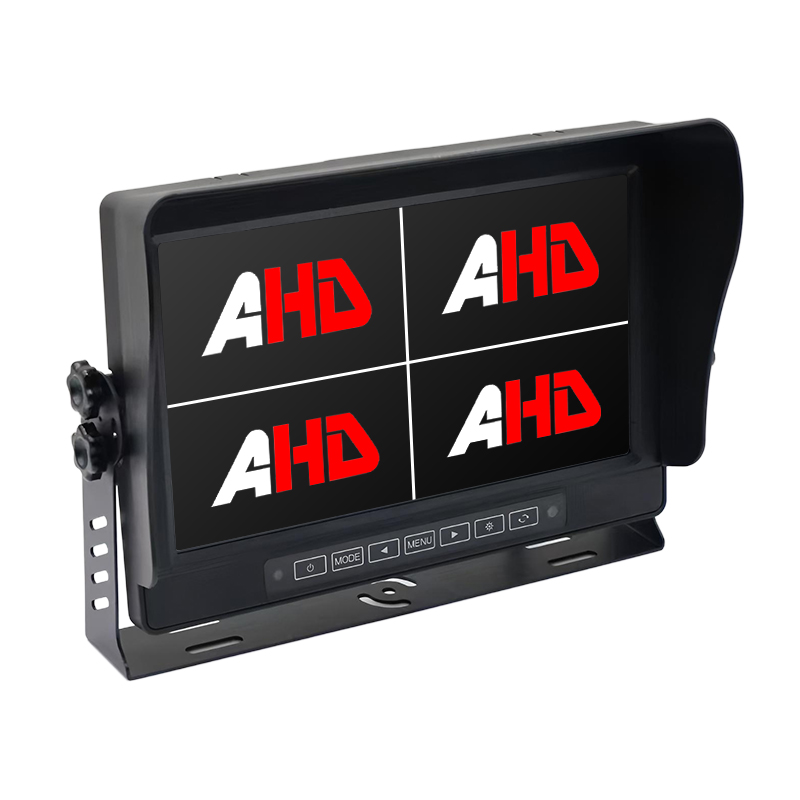 Caméra de recul avec détection d'angle mort AI, alarme sonore et lumineuse intégréeLeader automobile10,1 pouces IP69K étanche 4CH AHD entrées Quad Display Touch Buttons Moniteur de véhiculeFabriqué avec un boîtier en alliage d'aluminium, la conception étanche IP69K et les boutons tactiles peuvent garantir un bon fonctionnement du moniteur dans des conditions environnementales difficiles. Le rapport 16:9 et la résolution 1024 x 600 offrent une vue claire de l'environnement du véhicule. Entrées de signal AHD 4CH avec fils de déclenchement, entrées AHD compatibles avec les caméras CVBS / AHD 720P / AHD 1080P, commutateur automatique NTSC / PAL.
