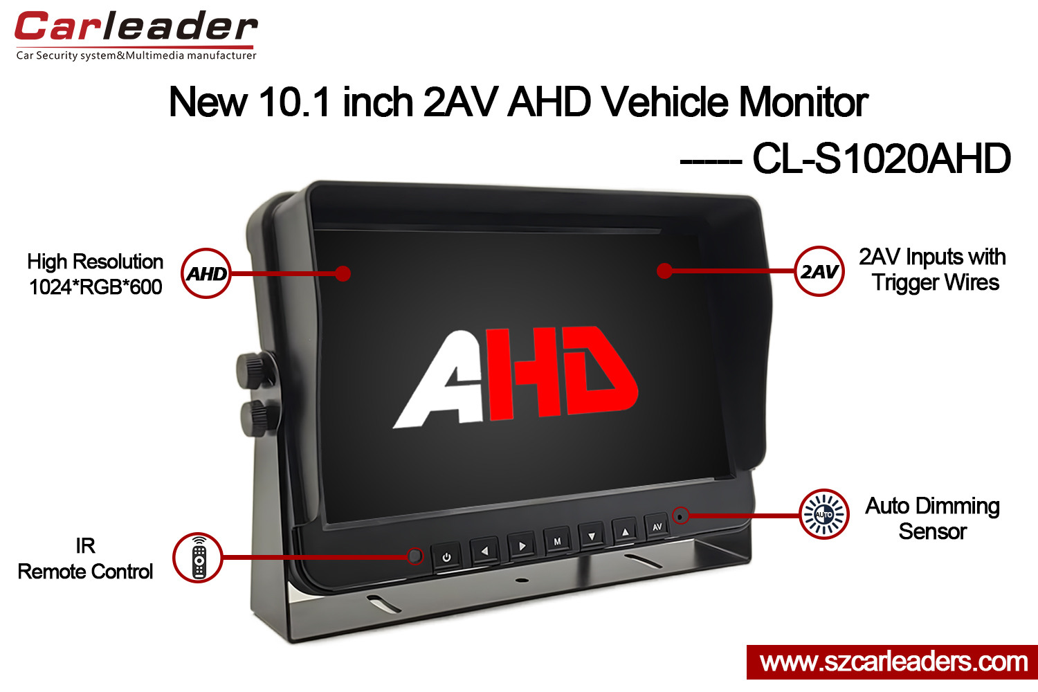 Leader automobileest fier de vous présenter notre Moniteur de sauvegarde de véhicule à entrées AHD 10,1 pouces 2CH.