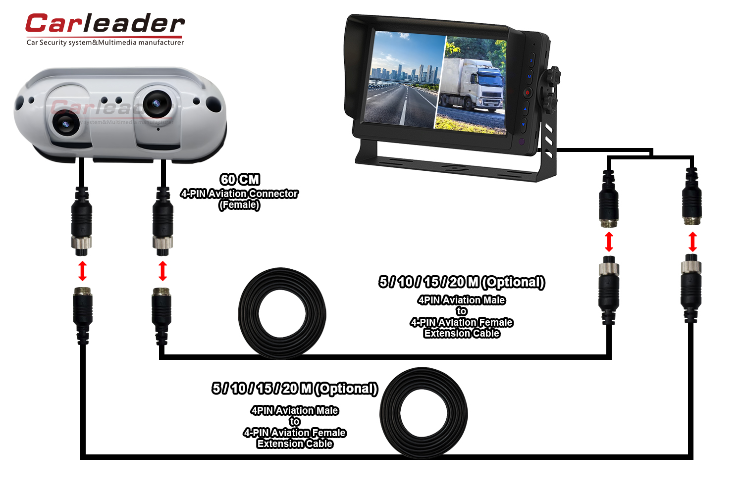 Leader automobileproposera deux solutions de câblage différentes pour la caméra de recul robuste à double objectif AHD Starlight, pour répondre aux différents besoins de câblage :
