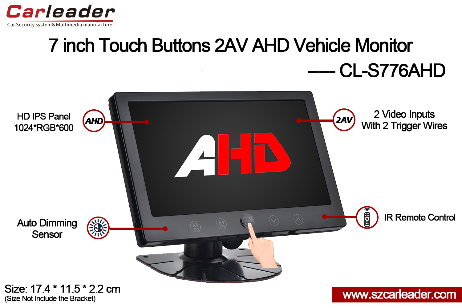 Leader automobileMoniteur de véhicule lourd de boutons tactiles d'entrée de l'écran 2CH AHD d'IPS de 7 poucesest un moniteur AHD de 7 pouces hautes performances conçu pour un affichage visuel fiable et clair dans diverses applications. Doté d'une fonction avancée d'atténuation automatique, il assure une visibilité optimale de l'écran dans différentes conditions d'éclairage, réduisant ainsi la fatigue oculaire et améliorant la convivialité.