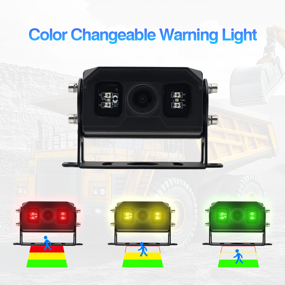 Voyants d'avertissement à changement de couleur : les voyants d'avertissement sur la caméra changeront la couleur de la lumière lorsque l'objet entre dans la zone de détection correspondante (rouge, jaune, vert).